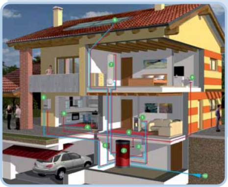 Telepítése az egyszintes, padlással rendelkezõ házakba a legcélszerûbb mert a padlástérben kitûnõen elfér a ventilátor és a csõhálózat is. A fûteni kívánt helyiségek plafonján csak egy diszkrét , esztétikus megjelenésû légbefúvót láthatunk.